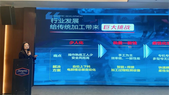 大會分為主論壇和兩場分論壇。10月25日上午,“描繪楚天藍(lán)圖,筑夢氫能藍(lán)?!敝髡搲希A工激光精密事業(yè)群氫能源行業(yè)市場總監(jiān)李維帶來專題報告《“激光+”助力氫能智造》,全面展現(xiàn)華工激光氫能源智慧工廠整體解決方案核心硬實(shí)力。